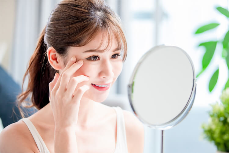自分のまぶたが三重かどうか確認するには、鏡の前で目を自然に開けた状態で観察してみましょう。二重の折り目の上に、もう一本線が見えれば三重まぶたの可能性が高いです。また、アイメイクがいつもと違う感じになる、アイシャドウが塗りにくくなったと感じる場合も、三重まぶたになっているサインかもしれません。